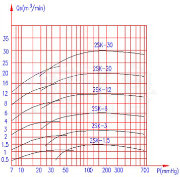 2SK型水環式真空泵的性能曲線圖: