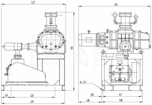 為了提高羅茨旋片真空機(jī)組的抽氣性能,達(dá)到較高的極限真空和改善在低入口壓力時(shí)的抽速特性及對(duì)大型真空機(jī)組配用較小規(guī)格的前極泵,羅茨真空機(jī)組也有由二級(jí)羅茨真空泵串聯(lián)的三級(jí)機(jī)組。